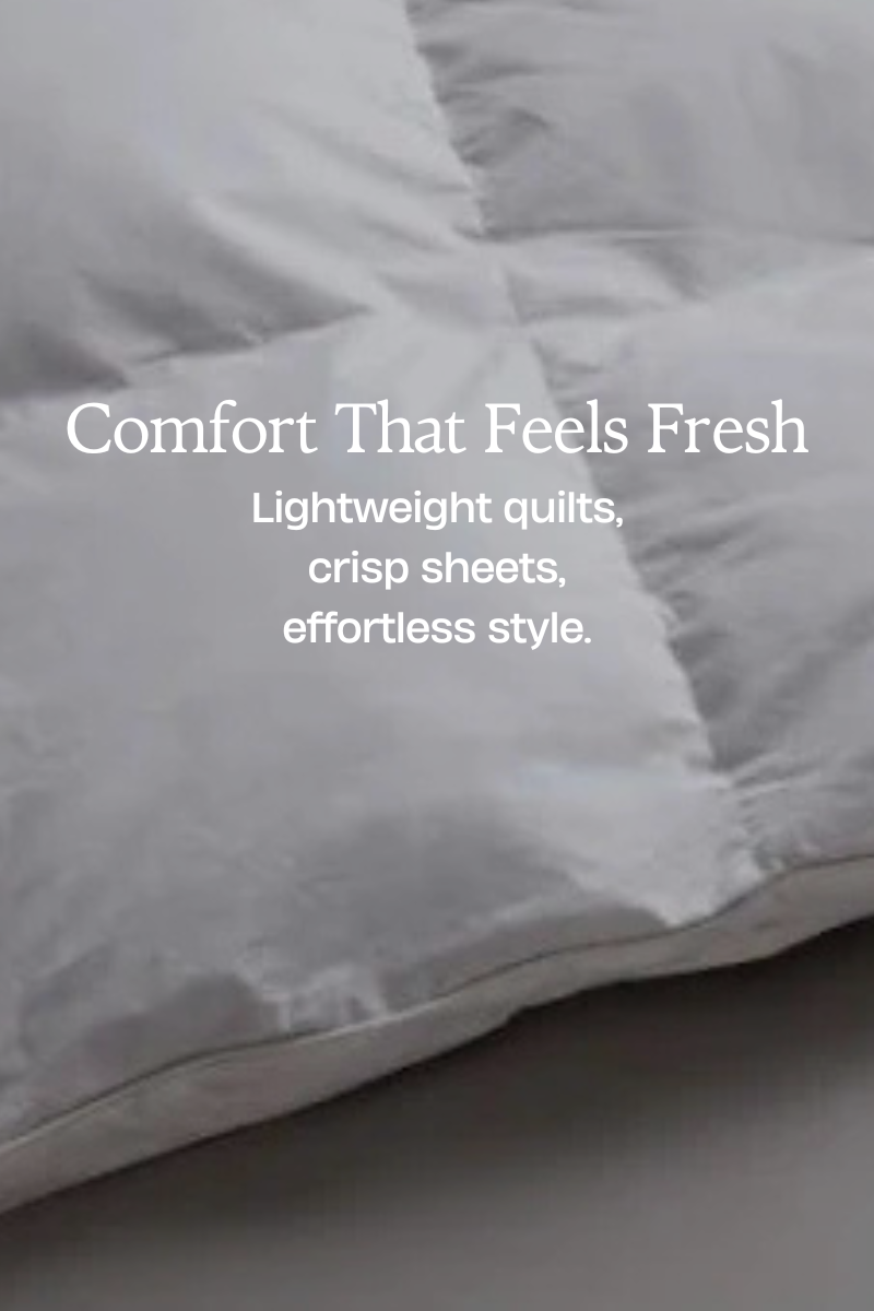 Discover our Spring Bedding Collection, designed to keep you fresh, comfortable, and well-rested. Whether you need cosy quilts, supportive pillows, or soft, breathable sheets, our range has everything for a restful night's sleep this season. We’ve also included plush bed toppers for added warmth and comfort without overheating. High-quality, durable materials, these pieces are made to last and provide long-lasting comfort.